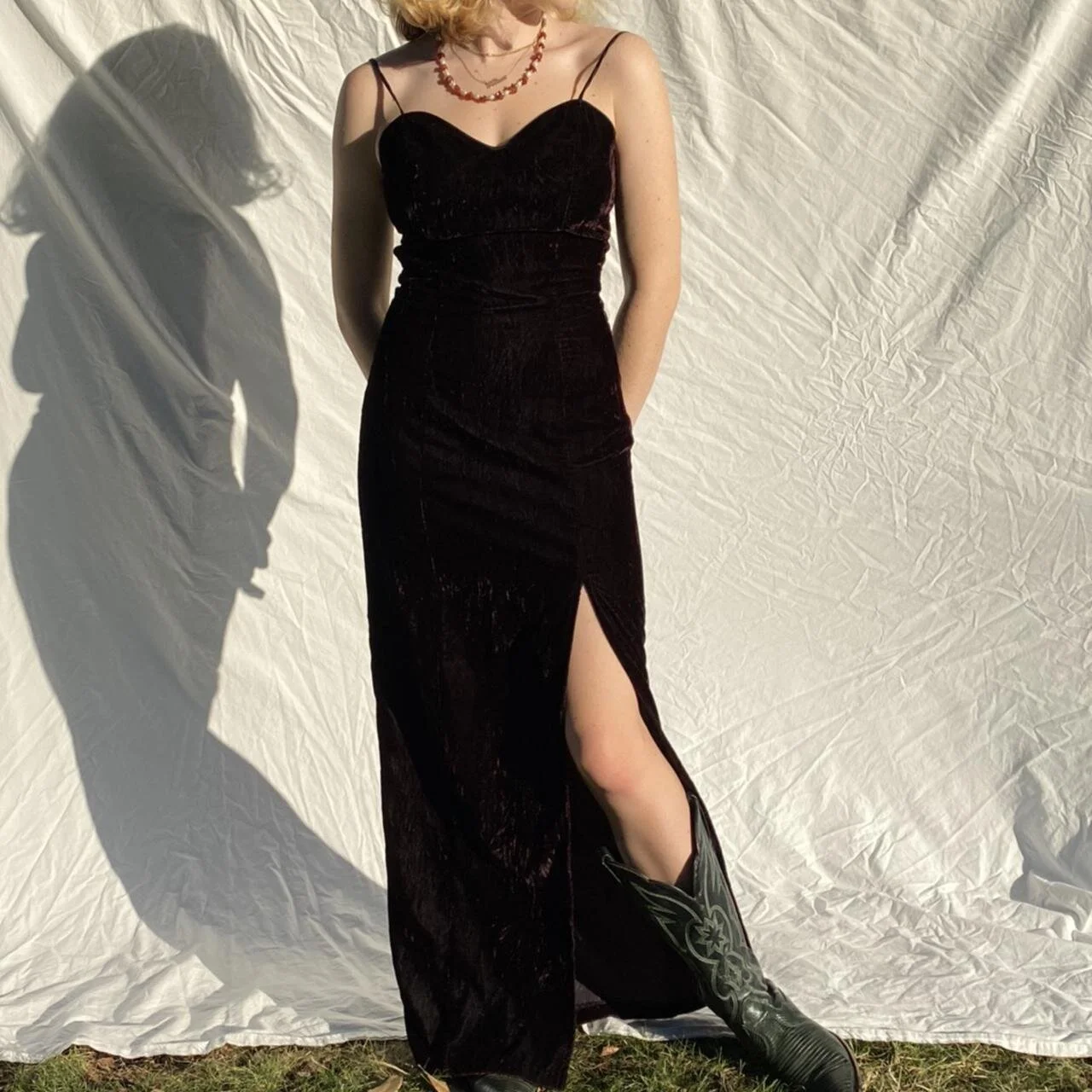 Vintage Jay Jacobs velvet maxi dress. Crushed velvet. Size 3/4. Minor flaw to back zipper seam, loose threading. Otherwise excellent vintage condition.